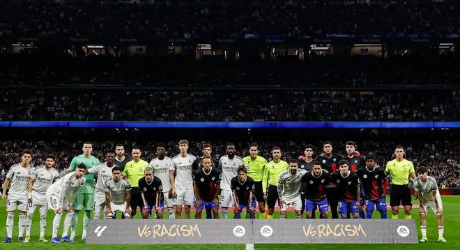 皇马官网也报道了这条新闻,新闻标题是“团结起来反对种族主义”,正文写道:“在马德里德比开始前,皇家马德里和马德里竞技的球员以及裁判组与一条横幅合影,对在本比赛日开展的反种族歧视意识宣传活动进行支持。”