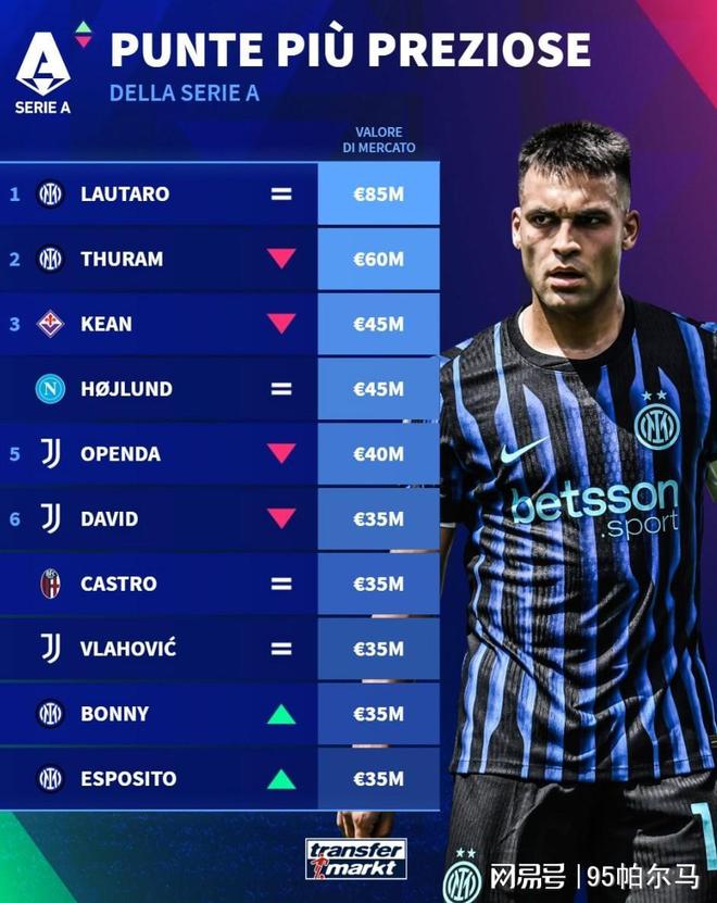在最新一期意甲全队身价排行榜上,总身价达7.43亿欧元的国米坐稳了头把交椅,其中个人身价达到8500万欧的劳塔罗贡献值最大,虽然暂时丢掉了亿元先生的头衔(巅峰时的自己1.1亿欧元),一直在全力以赴地倾注热情。