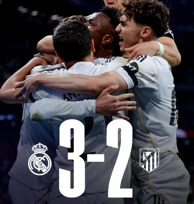 最后,马竞全力压上猛攻,阿尔瓦雷斯远射击中立柱,多次定位球与边路传中制造威胁,但皇马防线全员死守,卢宁多次关键扑救化解险情,吕迪格、赫伊森领衔的后防线寸土不让,硬生生将3-2的比分守到终场哨响。即便马竞全场拼尽全力,即便补时长达6分钟,即便人数处于劣势,皇马完成10人逆转,远比一场轻松取胜更具含金量。