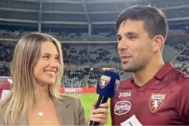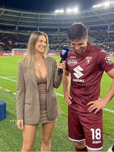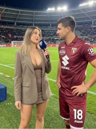 上周都灵4-1大胜帕尔马后,一名记者上前采访。视频里,这位女记者身穿低胸装,抢尽了风头,而西蒙尼似乎刻意避免眼神接触,场面一度相当尴尬。