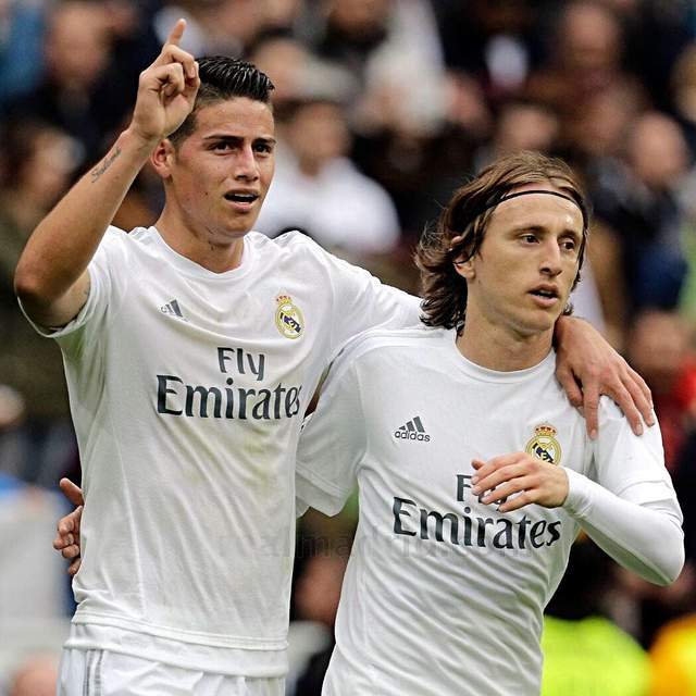 比赛中,没有J罗和莫德里奇PK,赛后,两大巨星有了互动。