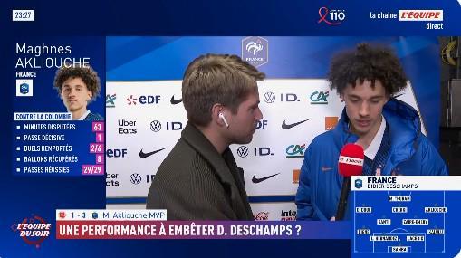 法国在友谊赛3-1战胜哥伦比亚,阿克利乌什赛后接受了《队报》的采访。