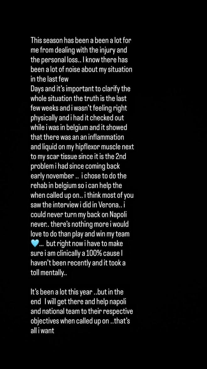 就算如此,卢卡库也不过是在社交媒体上发表了一纸声明,表示自己如今正在遭遇伤病的影响,选择在比利时治疗也是为了能够在日后更好的帮助球队。甚至表示“我永远不会背弃那不勒斯,没有什么比能为球队出战并赢得胜利更让我向往的事了。”类似的表态他也曾对国米说过,但是最终还是选择了背弃国米,拒绝了球队的转会,只是如今轮到了那不勒斯而已。