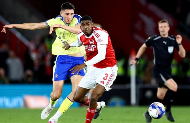 下半场易边再战。阿森纳直到第60分钟才进行换人调整,哲凯赖什、卡拉菲奥里和马杜埃凯替补上场。这次换人起到了效果。第68分钟,哲凯赖什门前包抄射门打进,扳平比分。4分钟后,加布里埃尔受伤下场。萨利巴替补上场。第83分钟,道曼起脚兜射。门将飞身把球扑出。第85分钟,查尔斯在禁区内推射破门,完成绝杀!最终,阿森纳1-2输给南安普顿,爆冷出局!南安普顿晋级4强,创造了奇迹!