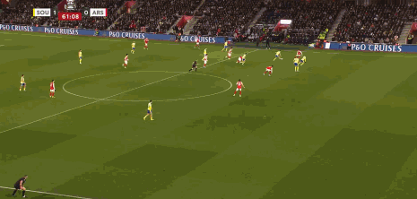 第61分钟,阿森纳后场出球失误,费洛斯射门高出