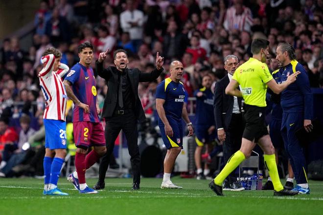 而这个判罚引发了马竞主帅西蒙尼的强烈不满,阿根廷“匪帅”暴跳如雷,转身挥手表达抗议。
