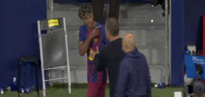 亚马尔对德拉富恩特(名字一样,巴萨门将兼战术部署教练)的布置很是生气,从下半时开始后他就一直跟这个主帅对着来。德拉富恩特多次要求亚马尔跑动及传给其他队友,然而亚马尔却射门,对此主帅愤怒指责他,亚马尔则怒气相对,没有和解。