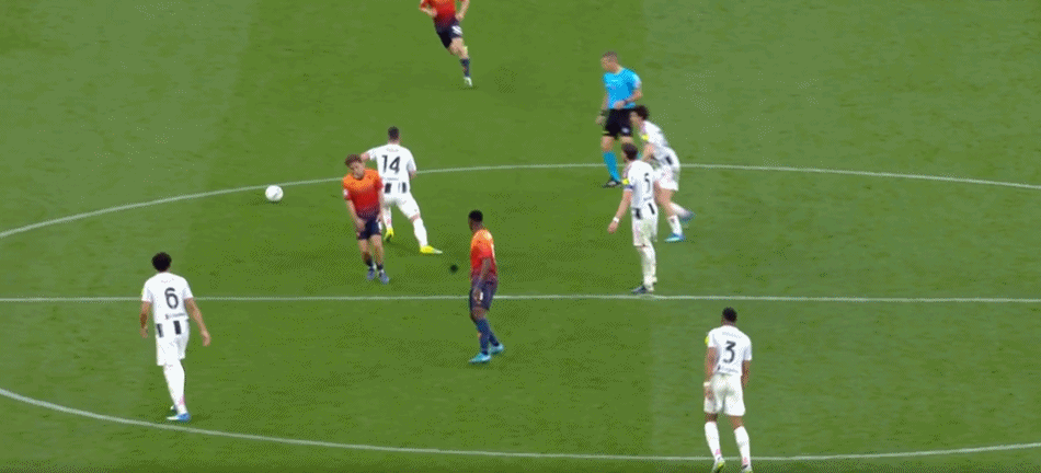 第33分钟,伊尔迪兹左路内切兜射,皮球被门将没收