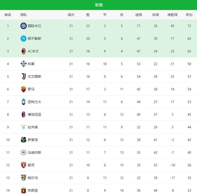 北京时间4月7日凌晨,意甲第31轮,真正进入“刺刀见红”的阶段。法布雷加斯率领的科莫客场0-0战平乌迪内斯,继续霸占积分榜第四;尤文图斯主场2-0拿下热那亚,依旧为欧冠席位苦苦追分;亚特兰大3-0客场完胜莱切,后者依旧排在倒数第三,保级压力山大;那不勒斯1-0绝杀AC米兰,波利塔诺打入全场唯一进球,这样一来,国际米兰以7领跑积分榜。