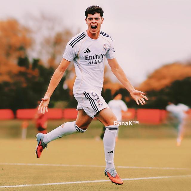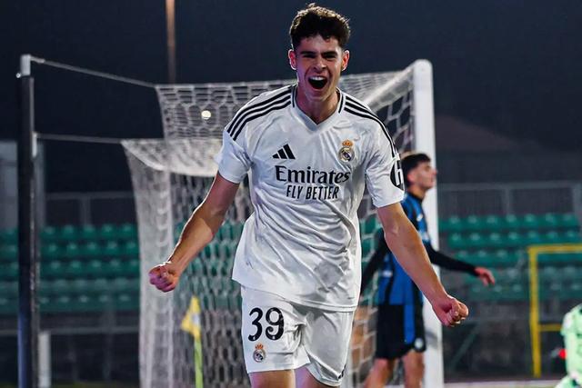 这位横空出世的神锋,从小看着“外星人”罗纳尔多的踢球集锦长大,现在又天天抱着哈兰德的录像带研究怎么当个进球机器。12岁就加入皇马“拉法布里卡”青训营的他,曾在2018年特内里费的希望之星比赛中大放异彩,但也经历过在U16梯队坐冷板凳的低谷。不过,自从在青年C队(单赛季26球)和青年B队(单赛季23球)找回射门靴后,他就彻底开挂了。