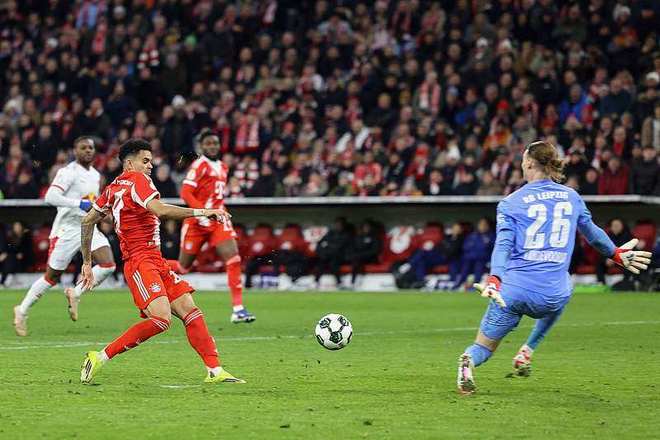 上半场,占据主动的拜仁创造出多次有威胁的进攻,好在莱比锡门将发挥出色,力保球门不失。半场战罢,两队战成0-0。下半场第64分钟,斯塔尼希奇造点,凯恩主罚命中,拜仁1-0莱比锡,仅仅过了4分钟,奥利塞精准传球,迪亚斯及时跟进推射破门,拜仁两球领先,此后,双方都没能再取得进球。最终拜仁2-0完胜莱比锡,晋级德国杯4强。
