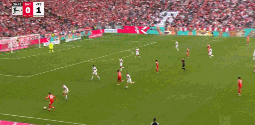 第31分钟,穆西亚拉左路1V2突入禁区横传门前,格雷罗包抄打空门得手,拜仁1-1斯图加特。