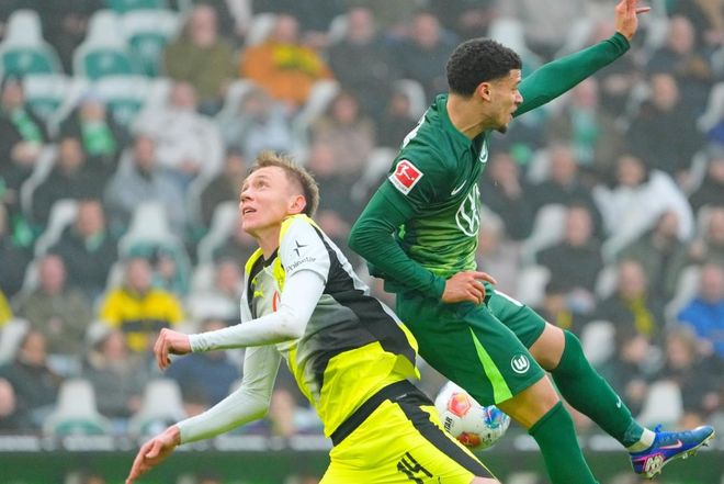 第31分钟,拜尔在禁区中路包抄劲射,皮球被挡了一下击中门框弹了出去。真是不可思议。沃尔夫斯堡逃过一劫。7分钟后,多特蒙德抓住了机会。瑞尔森开出角球,布兰特在前点头球攻门,球进了!这记头球难度极大。多特蒙德取得领先。半场补时阶段,乔布-贝林厄姆尝试一脚远射,被扑了出去。半场结束,多特蒙德1-0领先沃尔夫斯堡。