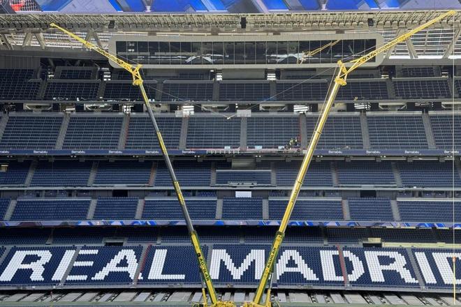 为加快施工,俱乐部已投入两台高空作业车同时作业。不过整体工期仍会较长,主要原因有二:该区域技术复杂,必须对各区域球迷采取极高安全防护;伯纳乌的赛事日程会不定期中断施工。