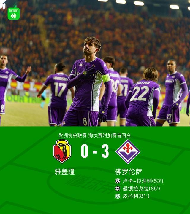 雅盖隆0-3佛罗伦萨,曼德拉戈拉任意球破门,皮科利点射