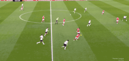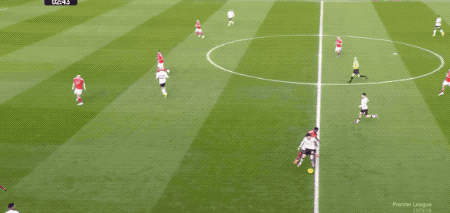 第38分钟,哈钦森的直塞打穿利物浦的防线,热苏斯没有抢先出脚,范戴克伸出一脚,完成关键解围。