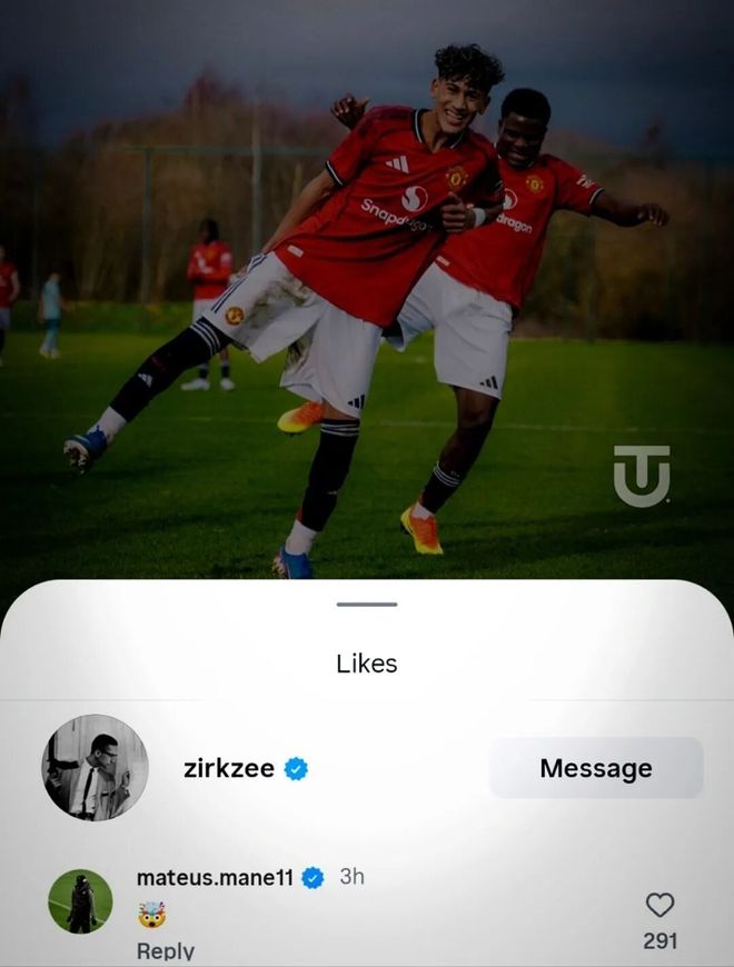 齐尔克泽和马特乌斯·马内(曼联传闻球员)点赞小将JJ加布里埃尔的Instagram