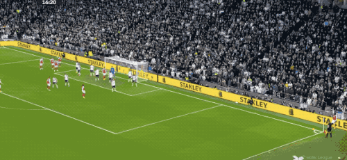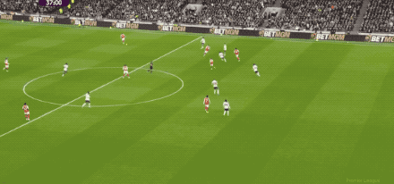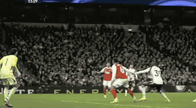 第61分钟,埃泽策动进攻,萨卡的单刀射门被挡出,埃泽补射梅开二度,两回合对阵热刺打进5球。