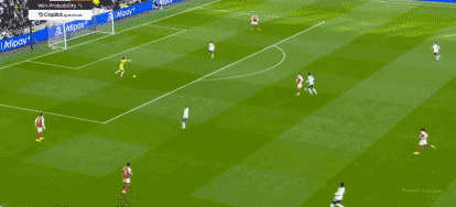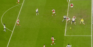 第37分钟,赖斯送出精准长传,萨卡插上单刀低射,维卡里奥出击将球扑出。