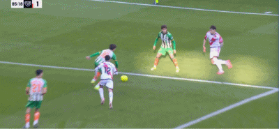 第90+10分钟,皮球出界在先,贝蒂斯进球无效