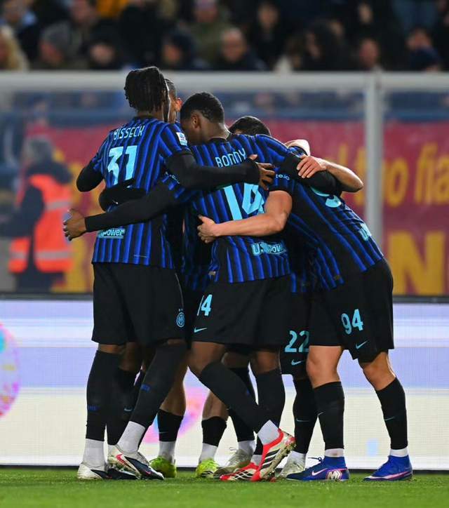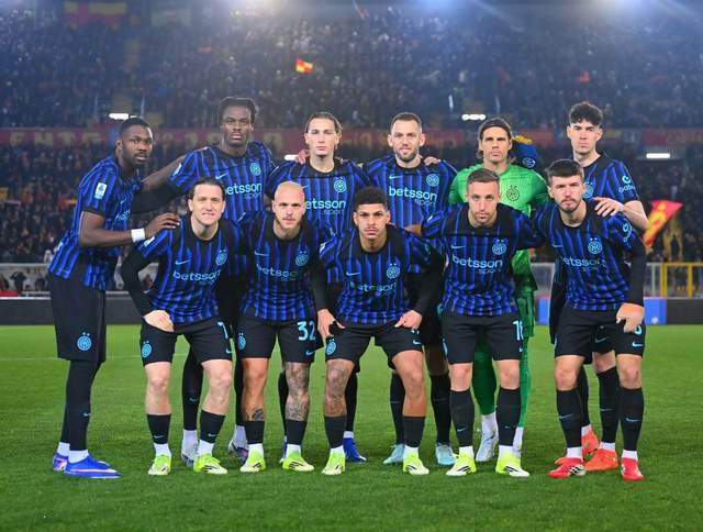 今夜,国际米兰阵容做了调整:门将是索默,后防线:德弗里带上队长袖标,身边是比塞克和巴斯托尼。中场:迪马尔科和路易斯·恩里克打两个边前卫。中场三人组:苏契奇,泽林斯基和弗拉泰西。前锋:埃斯波西托和小图拉姆。——队长劳塔罗可能伤缺一段时间,大概率缺席接下来的欧冠生死战。