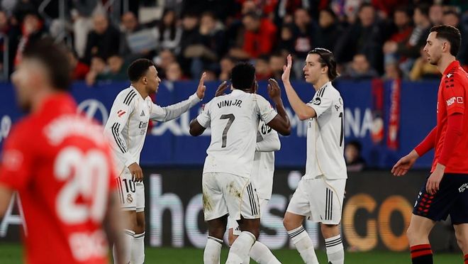 第73分钟,皇马终于进球了!巴尔韦德带球一条龙突破,进入禁区左侧,随即送出横传。维尼修斯门前包抄射门,球进了!这粒进球巴尔韦德的功劳很大,他以一己之力撕开了奥萨苏纳的防线,为维尼修斯创造了这么好的机会。第90分钟,劳尔-加西亚打进绝杀进球。姆巴佩不敢相信,完全懵了。最终,皇马1-2奥萨苏纳,爆出大冷门。