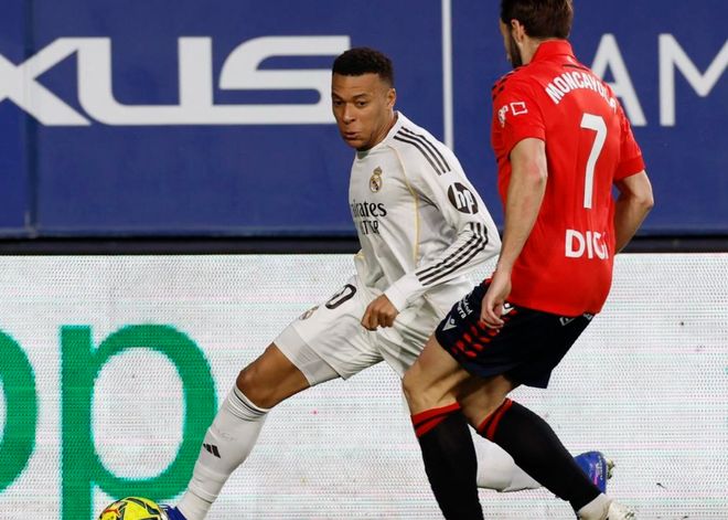 第30分钟,姆巴佩外围尝试一脚远射,打近角。门将倒地把球扑出了底线。2分钟后,奥罗斯放倒维尼修斯,被出示黄牌。第33分钟,布季米尔被库尔图瓦踩在脚面上,痛苦倒地。裁判看了回放后,认定是犯规,判罚点球。布季米尔亲自主罚,他骗过门将轻松推射破门。皇马落后了!半场结束,皇马0-1奥萨苏纳。