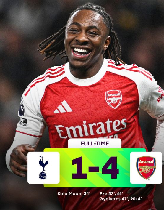 阿森纳4-1热刺完成双杀,埃泽约克雷斯双核建功,5分领跑仍有隐忧