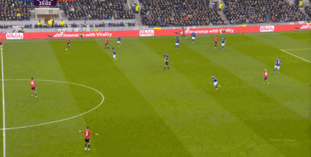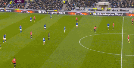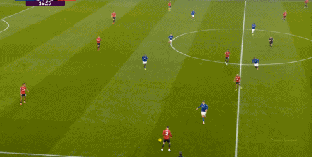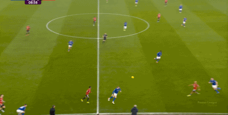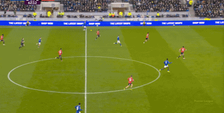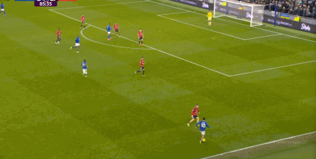 因为,从55到70分钟,埃弗顿几乎将曼联压在了半场范围内,他们用相当长线条的方式来发展自己的进攻: