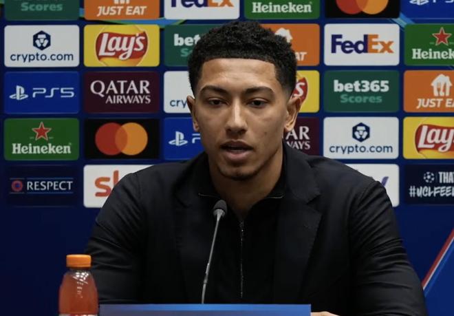 北京时间2月26日,欧冠淘汰赛附加赛次回合,亚特兰大将对阵多特蒙德。赛前,多特蒙德球员乔布-贝林厄姆出席了发布会。