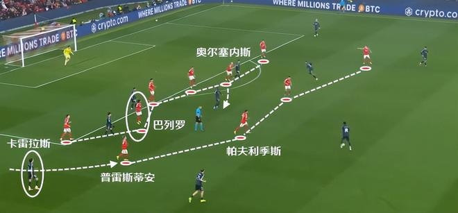 尤其是奥尔塞内斯的补位意识很好,他放在双后腰位置,另外一个搭档是巴列罗或者是里奥斯,他俩都更擅长怼人和点对点回追,奥尔塞内斯来选位和补防是最好的选择。