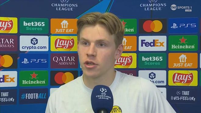 在欧冠淘汰赛附加赛总比分5-2淘汰国际米兰之后,博德闪耀前锋海于格接受了来自TNT体育的采访。
