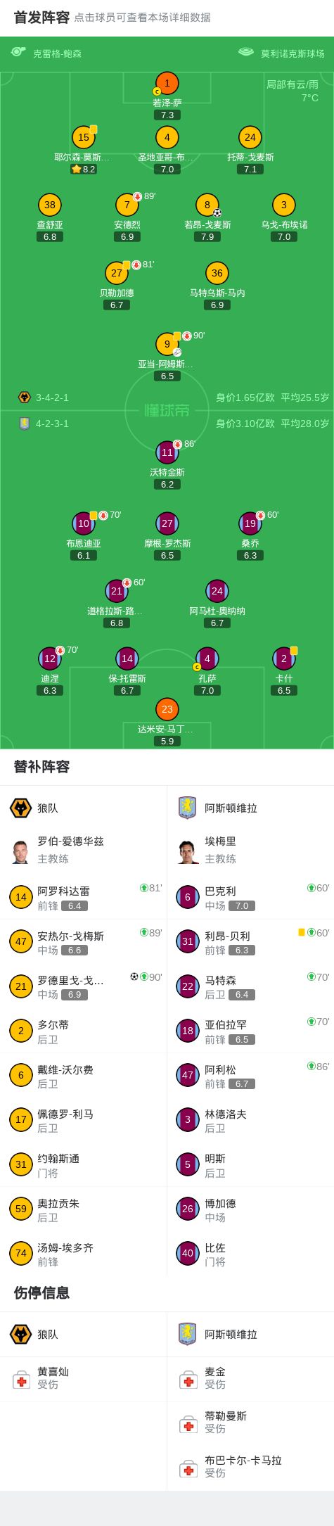 维拉0-2狼队遭遇三场不胜,若昂-戈麦斯破门,罗德里戈建功