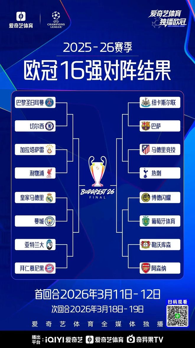 北京时间2月27日,2025/26赛季欧冠淘汰赛抽签结果出炉。巴黎切尔西冤家聚首,皇城连续5年相遇。焦点对决,爱奇艺体育全媒体独家直播。