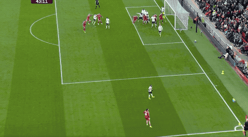 第43分钟,萨拉赫开出角球,鲍恩后蹭解围不远,埃基蒂克冷静回敲,麦卡利斯特外脚背凌空抽射建功,利物浦3-0遥遥领先,上半场结束,红军获得7次角球,3次转化为进球。安菲尔德仿佛变成了定位球实验室。