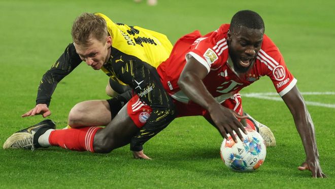 德甲第24轮的一场重头戏展开争夺,拜仁做客挑战多特蒙德。拜仁在前23场联赛取得19胜3平1负的战绩,牢牢占据榜首位置。近4场比赛拜仁都赢了,先是在联赛大胜霍芬海姆,随后在德国杯淘汰莱比锡,接着在联赛击败云达不莱梅和法兰克福。这次拜仁面对的是联赛排第2的多特蒙德。结果,拜仁完成逆转好戏,击败了多特蒙德。这让拜仁与多特蒙德的差距拉大到11分,冠军归属基本失去悬念。