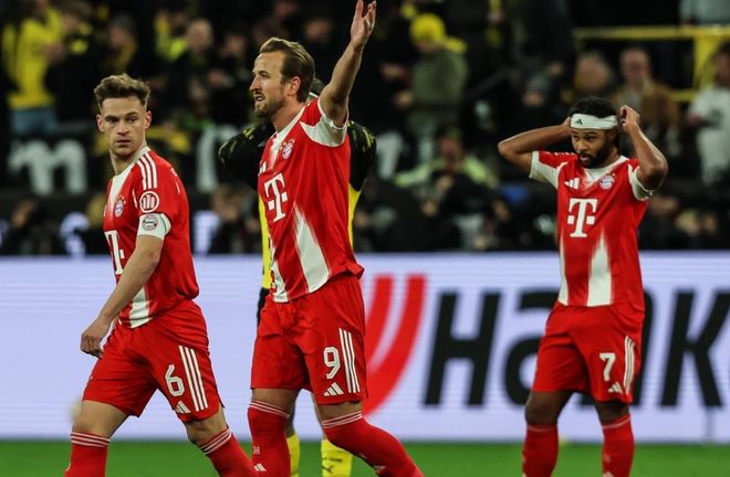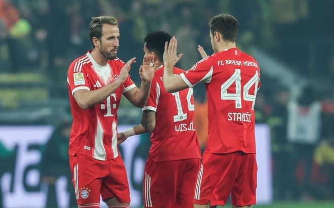下半场易边再战。第51分钟,于帕梅卡诺球门后点包抄射门,面对空门竟然没有踢中皮球,太不可思议了!2分钟后,拜仁进球了!格纳布里在禁区内头球摆渡,哈里-凯恩直接凌空射门,球进了!第70分钟,拜仁获得点球机会。哈里-凯恩主罚命中,帮助拜仁反超比分。第83分钟,斯文松把比分扳平了。第87分钟,基米希垫射破门,完成绝杀!最终,拜仁3-2险胜多特蒙德。
