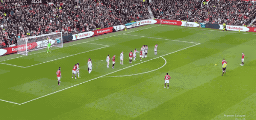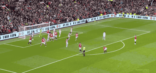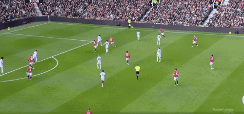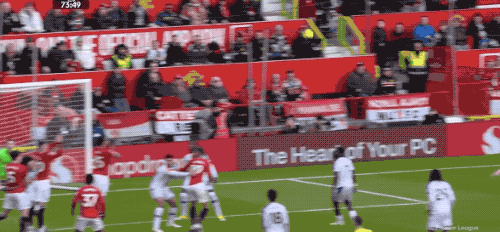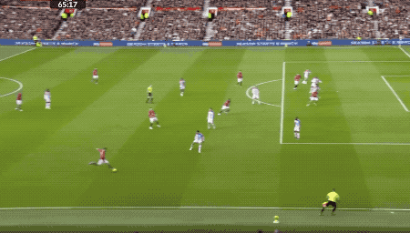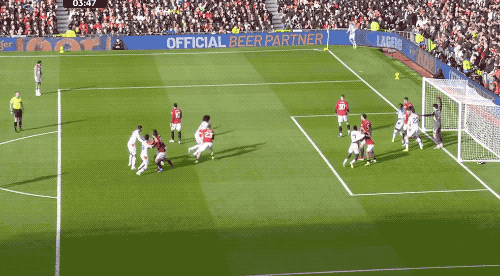 1分钟后,曼联再次拿到任意球,B费传中,卡塞米罗狮子甩头,将球顶偏。