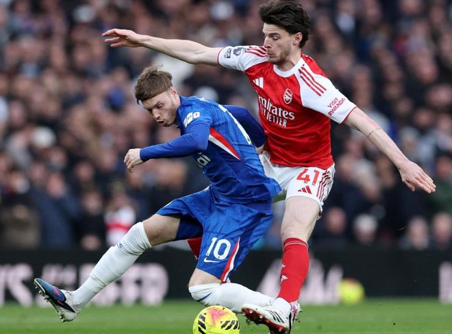 下半场易边再战。第50分钟,萨卡射门被挡了一下发生变向,门将把球扑出。随后,恩佐禁区前沿尝试一脚低射,被扑了出去。第53分钟,佩德罗头球攻门,被门将扑住。第56分钟,阿森纳进行换人调整,马丁内利替补上场,换下特罗萨德。3分钟后,帕尔默犯规,被出示黄牌。