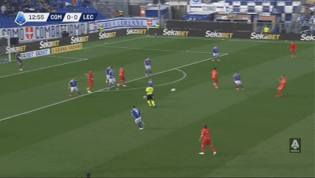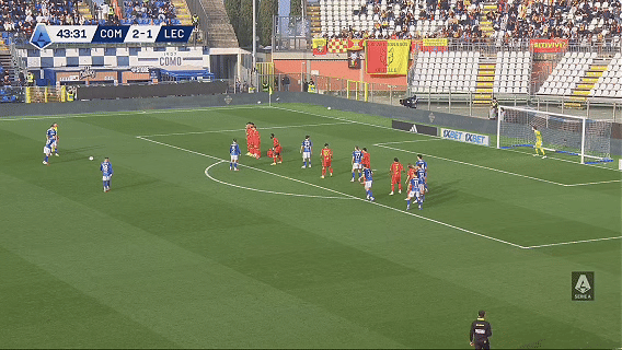 比赛开打第6分钟,杜维卡斯喜提单刀,射门却被客队门将神勇扑出,错失打破僵局良机。浪费机会的代价来得很快。仅仅过了7分钟,莱切利用角球制造混乱,库利巴利高高跃起头槌破门,科莫0-1落后,客队取得梦幻般开局。
