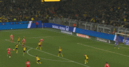 来到第26分钟,多特获得任意球机会,斯文松将球开出,施洛特贝克跃起头球破门,黄黑军团1-0领先!