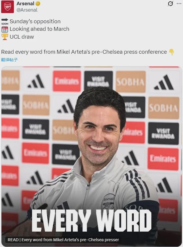 阿尔特塔出席了赛前新闻发布会,阿森纳主帅谈到了球队的伤病问题。