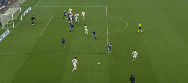 古铁雷斯头球攻门,皮球偏出球门