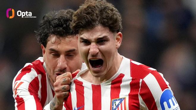 赛后根据Opta的统计,本场比赛胡利安-阿尔瓦雷斯的绝杀发生在第93分钟11秒,这是自瑟洛特2024年12月对阵巴萨第95分钟37秒进球以来,马竞在西甲比赛中完成的最迟绝杀进球。