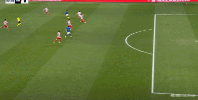 第43分钟,阿尔马达带球突破,被比达尔凶狠放倒
