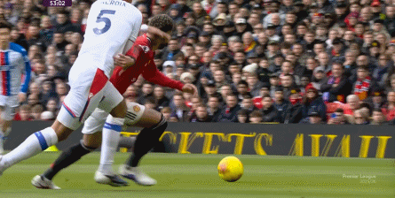 上半场后半段,受限于一周双赛带来的体能问题,当然也有取得进球之后的保守心态,水晶宫的表现就比较一般了,整体被曼联围住,打出的反制少之又少。