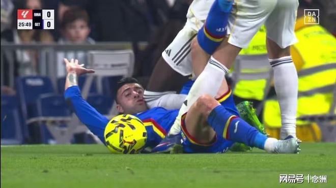 上半场第26分钟,皇马的德国中卫吕迪格在赫塔费球员里科倒地的情况下故意用膝盖去顶对方的面部,但是裁判没有表示,VAR也没有介入。