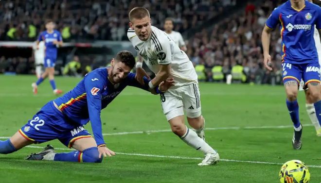比赛进入补时阶段,皇马在自己的半场被赫塔菲各种拖延时间,白衣军团越来越急躁。