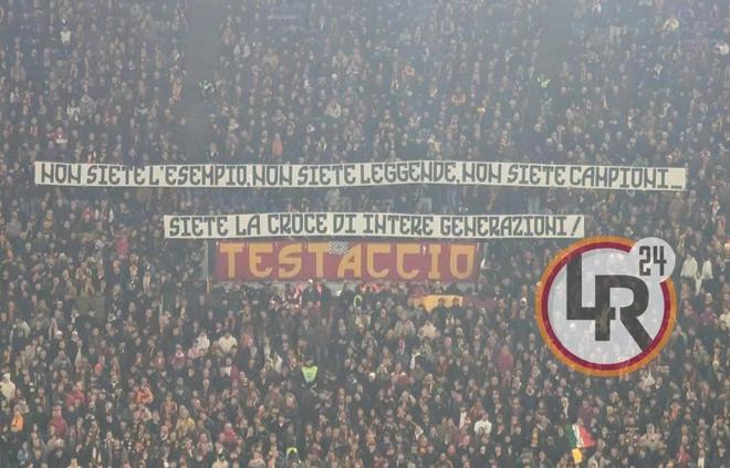 随后,罗马球迷又展示了另一条横幅:“你们不是榜样,不是传奇,不是冠军……你们是整整几代人的十字架!”横幅言辞犀利,表达了部分球迷对尤文长期统治和争议行为的不满。