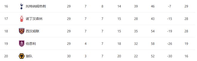 目前在积分榜上,热刺排名第16位,仅领先第18名西汉姆1分。以球队现在的状态来看,被身后的诺丁汉森林和西汉姆反超,似乎只是时间问题。